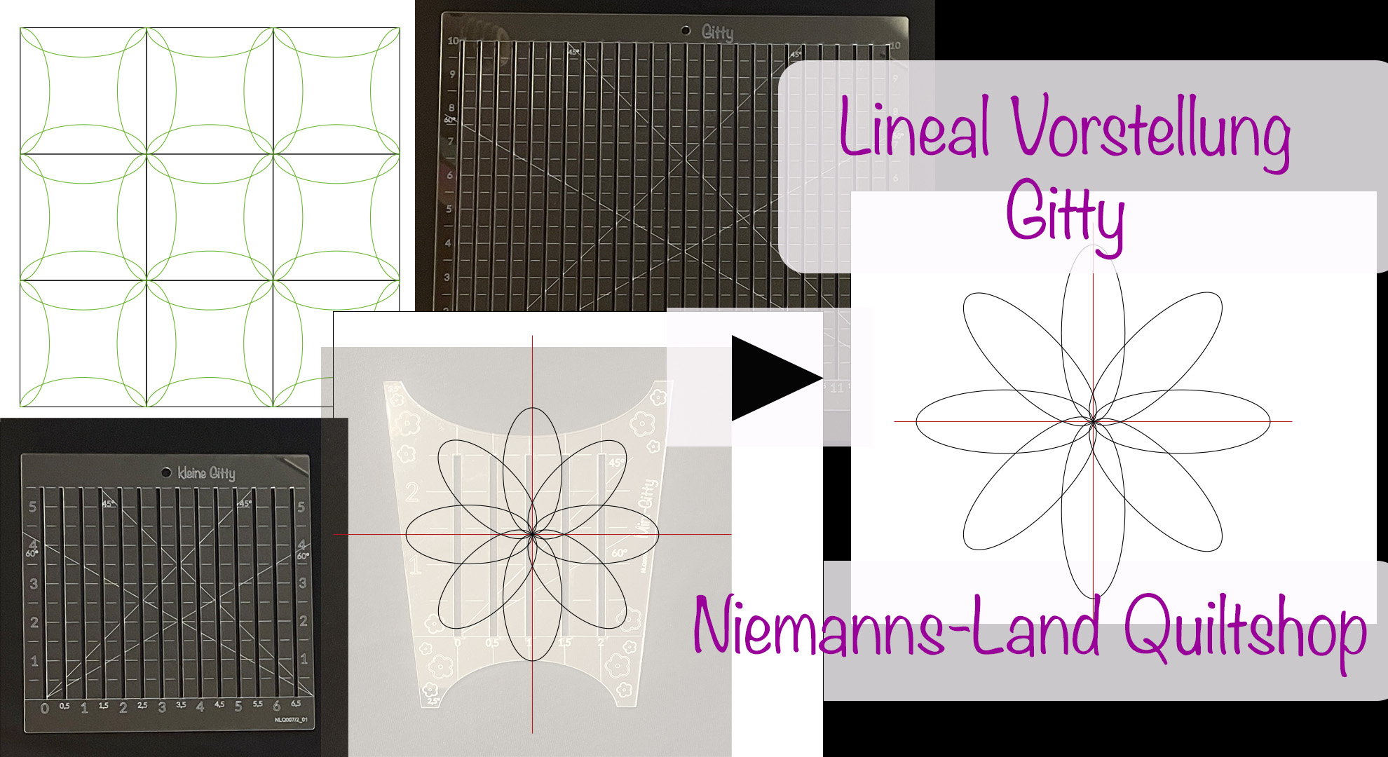 Gitty ist ein Markierlineal, um Quiltlinien vorzuzeichnen. Mit den Rillen im 1/2″ Abstand können Quiltlinien und Gitter- oder Rautenmuster vorgezeichnet werden. Größe: Linien von 0″